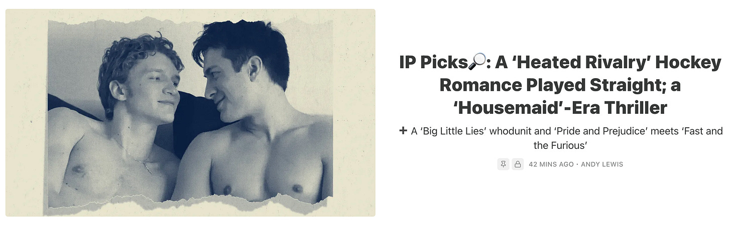Just when you think you know everything about Heated Rivalry breakout stars Connor Storrie and Hudson Williams, Elaine Low comes along with a fresh angle — the people who actually found them. In a revealing interview, Toronto-based casting directors Jenny Lewis and Sara Kay walk Elaine through the self-tapes, chemistry reads and ineffable it factor that turned two waiters into “overnight megastars.” From instinct to risk-taking, it’s a candid, dishy look at how hits (and stars) actually happen — and why they’re almost never accidental. Elaine’s lively Q&A about a hit was one of ours this week — and in this business of hits, it’s a great reminder of the creativity, ambition, instinct and risk it takes to make one: