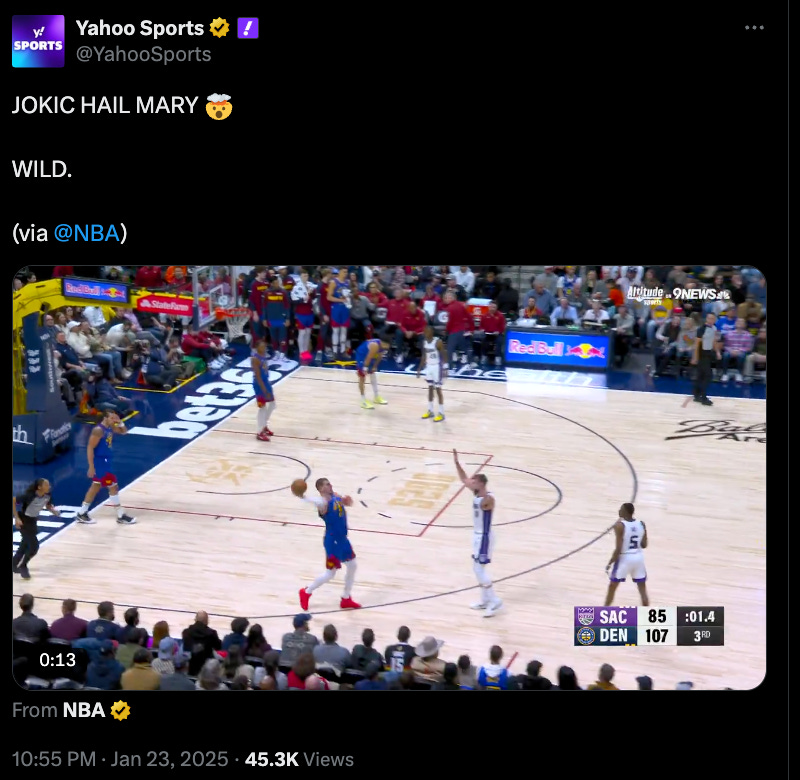 OH: Nothing like nailing an 80-foot shot on the same night you join Wilt Chamberlain as the only other NBA player to have a 35+ points / 20+ rebounds / 15+ assists game.