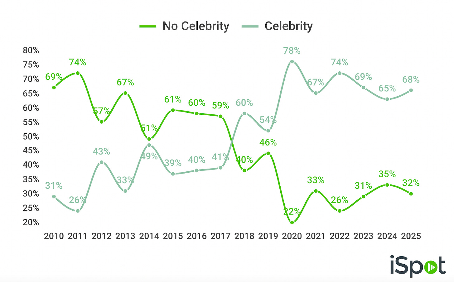 GOOD NEWS: Hollywood — you’ve gotten a lot more important to the Super Bowl since Covid, according to this new ISPOT analysis of big game ads.