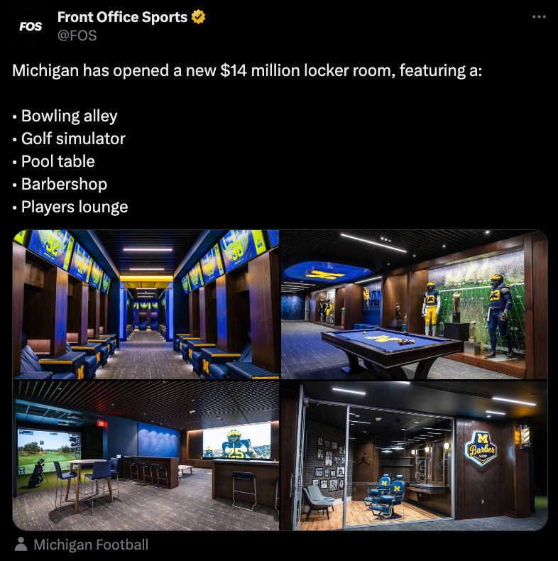 EH: Some people say there’s too much money in college sports, but I just don’t see it. Hope the MICHIGAN football team finishes their bowling tournament before the season kickoff on Saturday night. 🫣 Or I guess they could just pick it up at halftime.