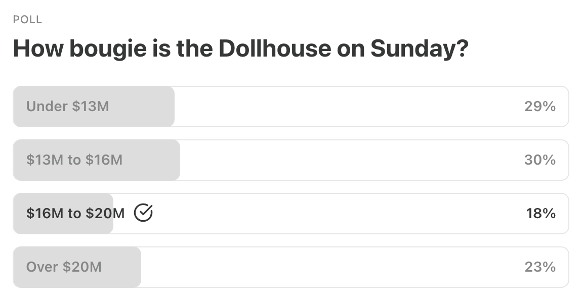 UNI/DWA Gabby’s Dollhouse — It’s been a minute since there was a movie to bring the young kids to, going with some optimism here too x the NETFLIX factor.