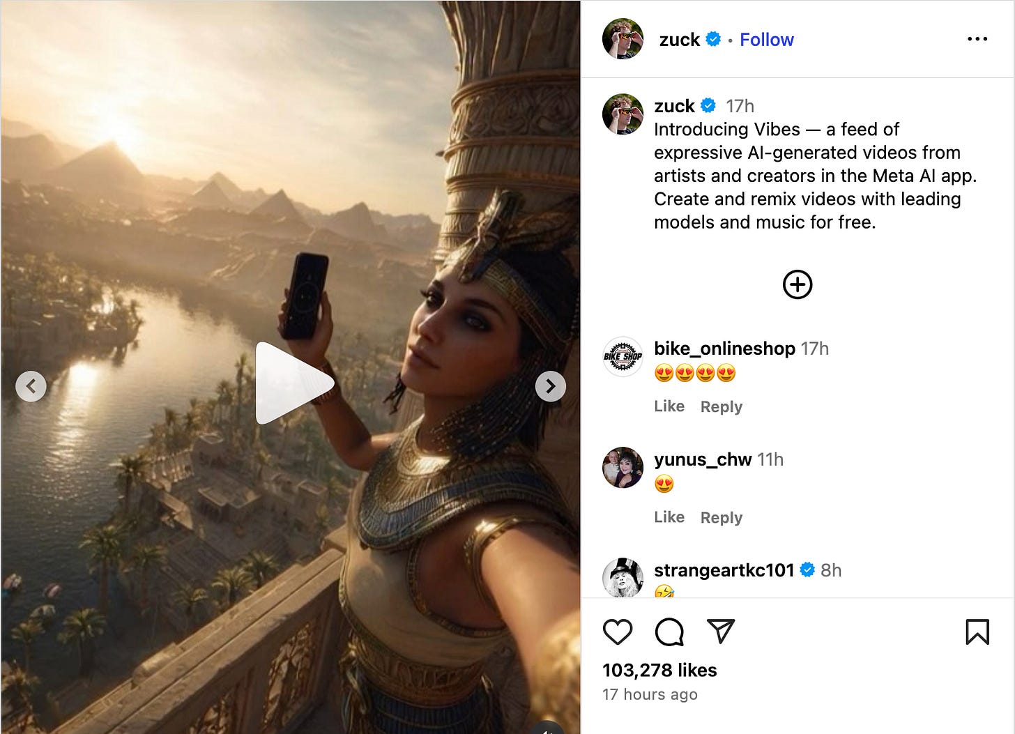 UH HUH: META’s AI app launched essentially a “VINE for AI” called Vibes, which will be a social feed consisting solely of short AI-generated videos, mostly set to popular music. Enjoy your precious time on Earth, everyone.
