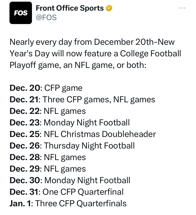 OH: In case you want to find the football (or gambling) fan in your life during the holidays this year . . . better make the most of Dec. 24 and Dec. 27.