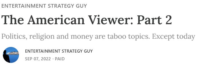Herewith, the second of ESG’s deep dives into the American Audience, presented in an encore run in light of all this new information from the 2024 election. The original below first appeared Sept. 7, 2022: