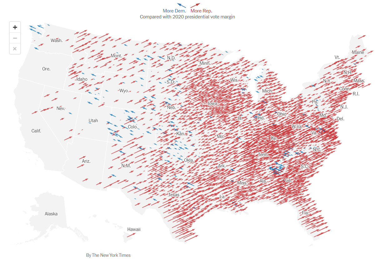 The day after the election, the New York Times reported that Donald Trump’s vote margin improved in 2,367 counties compared with 2020 and decreased in only 240 counties.