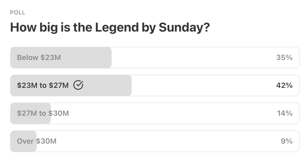I’ll throw in with the hoi polloi this week on Karate Kid: Legends generally hitting tracking, with the caveat that I have no idea how the Cobra Kai contingent will show up, or karate-loving pre-teens and teens, which are notoriously hard to track.