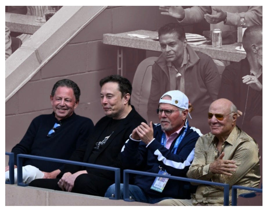 SPORTY SPICE A newly goateed David Zaslav at the U.S. Open with BFFs (from left) Bobby Kotick, Elon Musk and Barry Diller. (MediaPunch/Bauer-Griffin/GC Images)