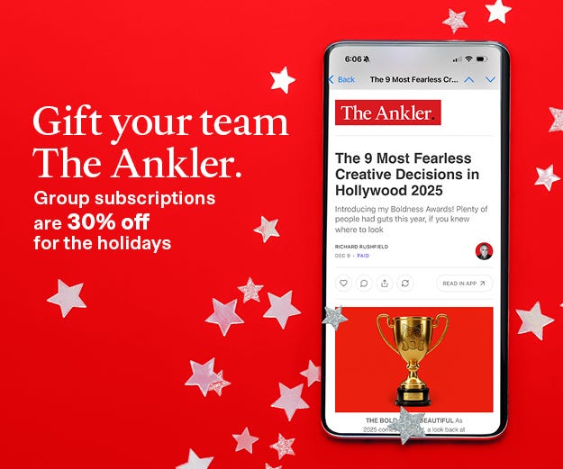 Here on Series Business, we covered your work and worries, experiments and innovations, and how you navigated all the disruptions to the business of the small screen. The best of Series Business this past year is a clear reflection of the best in Hollywood too — creative, ambitious, enterprising. Plus, these stories offer a strong set of career wisdom you can use to lay your own path forward. Have a look at our insightful, in-depth coverage, and consider treating your team to more of it throughout 2026. Group subscriptions to The Ankler are 30% off for just three more days!