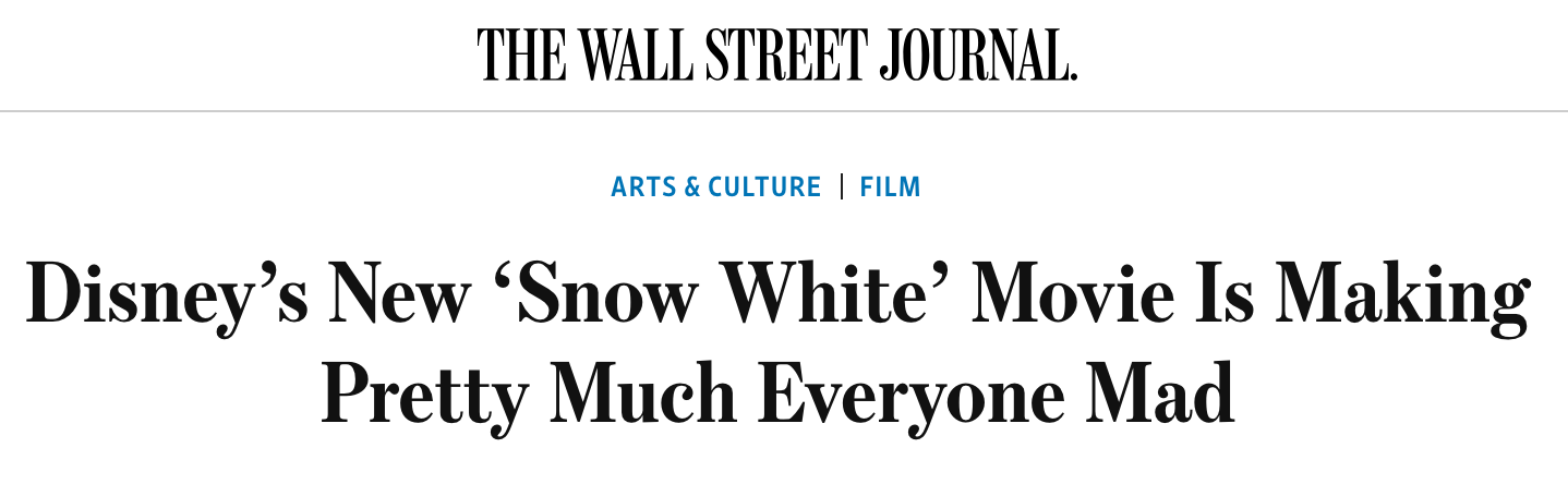 Gonna go out on a limb and say more Americans are discussing other things 👇 these days. So WSJ, beers are on me at the bar in Jersey tonight as we go around asking people for their particular reason for Snow White anger. And yes — this number looks to be a good 10 points higher than the onset of a global pandemic.