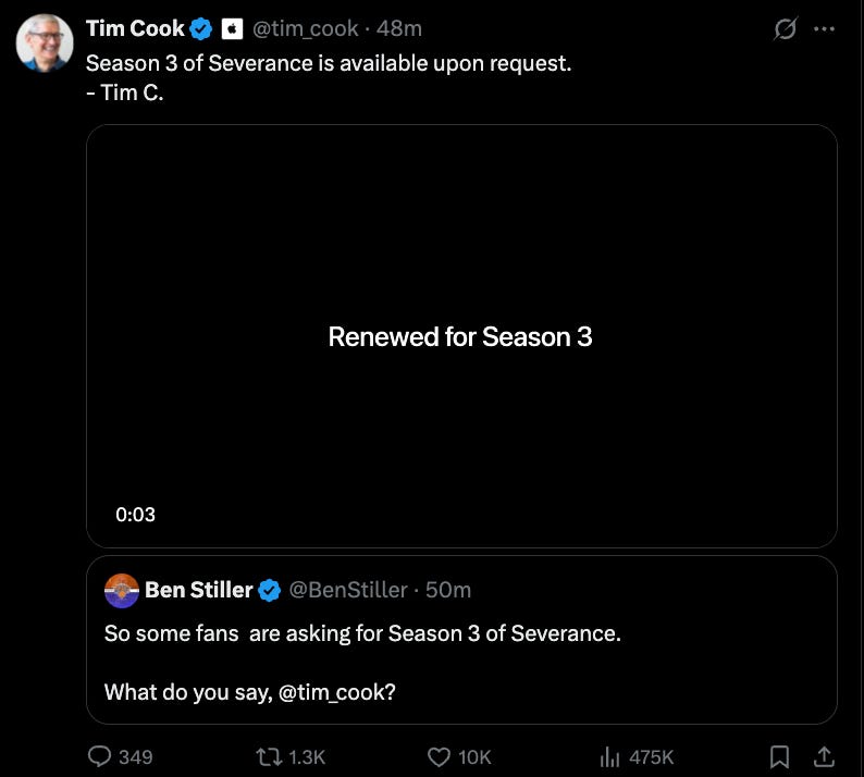 SEE: Tim Cook really does love the streaming business! Andy Jassy — you’re up next for releasing the MrBeast renewal when it’s ready.