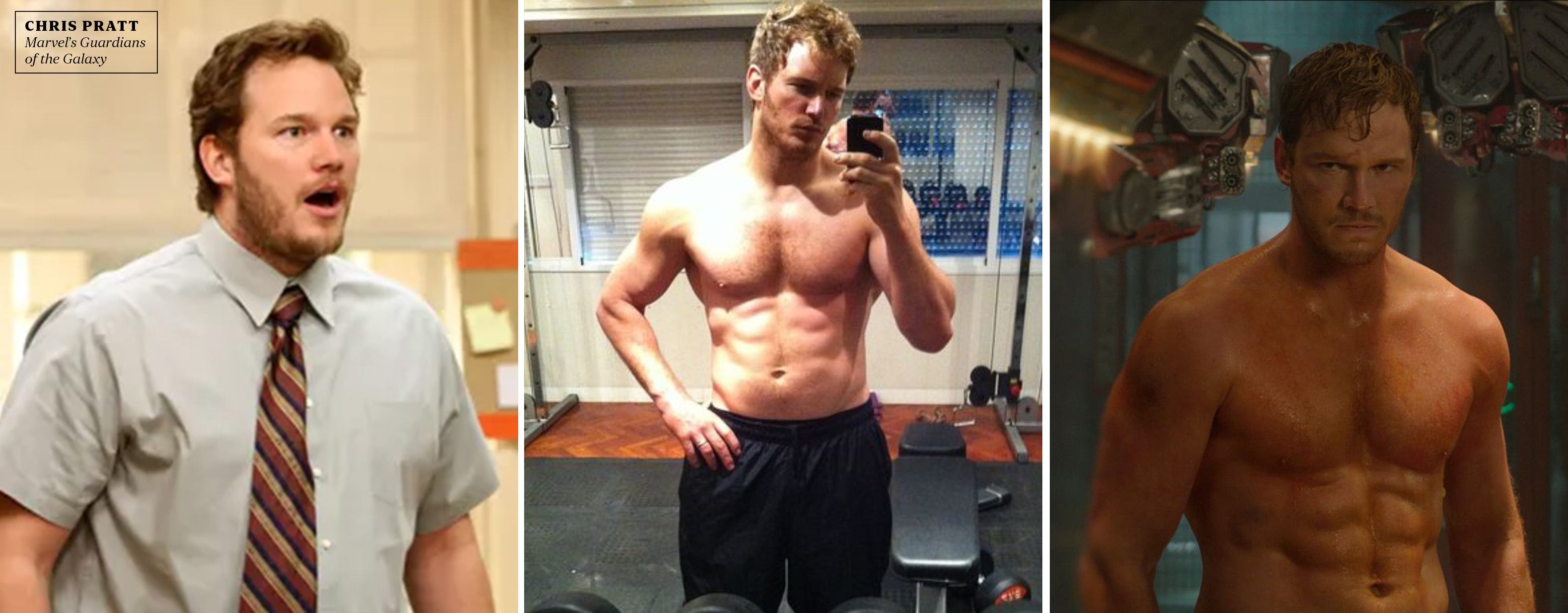 Or Chris Pratt, now 43, who went from Parks and Recreation to Popeye after reportedly dropping 60 pounds and packing on the muscle to play Star-Lord in 2014’s Guardians of the Galaxy and, later, the Avengers movies.