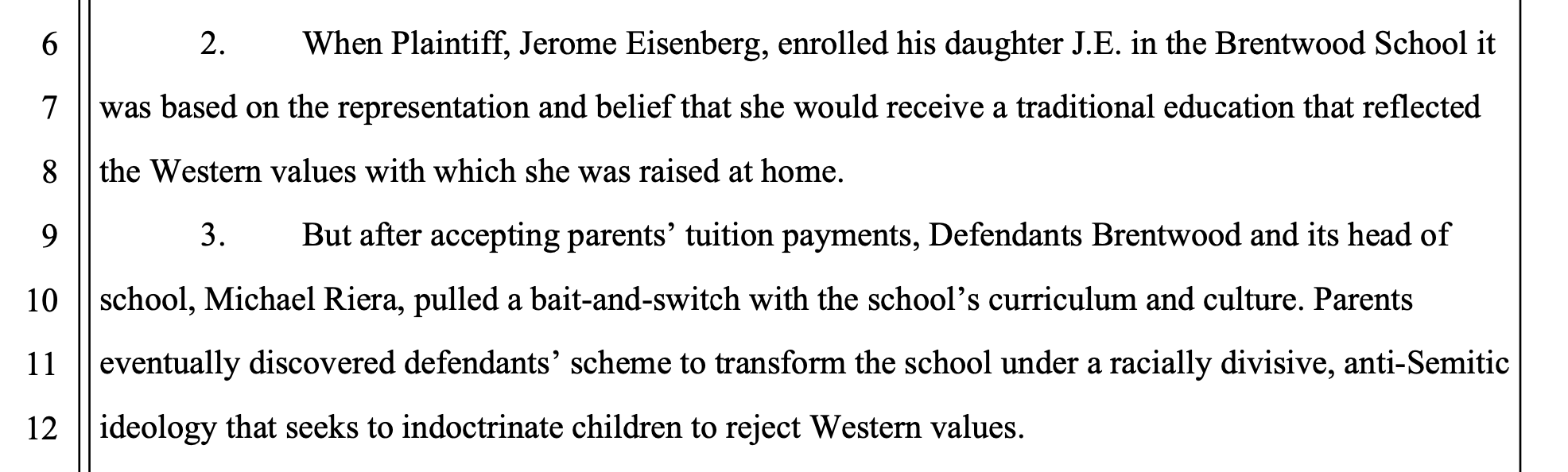 In a suit filed on June 8 in Los Angeles Superior Court, retired lawyer Jerome Eisenberg accuses Brentwood of breaching its covenant by “explicitly racializing its policies” without the consent or knowledge of the school’s parents. Eisenberg goes on to allege that parents of Brentwood’s Jewish students were intentionally frozen out of the curriculum discussions which is tantamount to antisemitism, the suit says. A lawyer with the same name as Jerome Eisenberg was indicted in 1993 for escrow fraud in Los Angeles County. Eisenberg’s attorney did not immediately return calls and emails for comment.