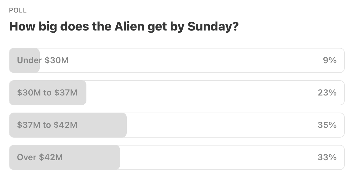 Looks like the bears have mostly, finally, gone back into hibernation this weekend on Alien: Romulus.