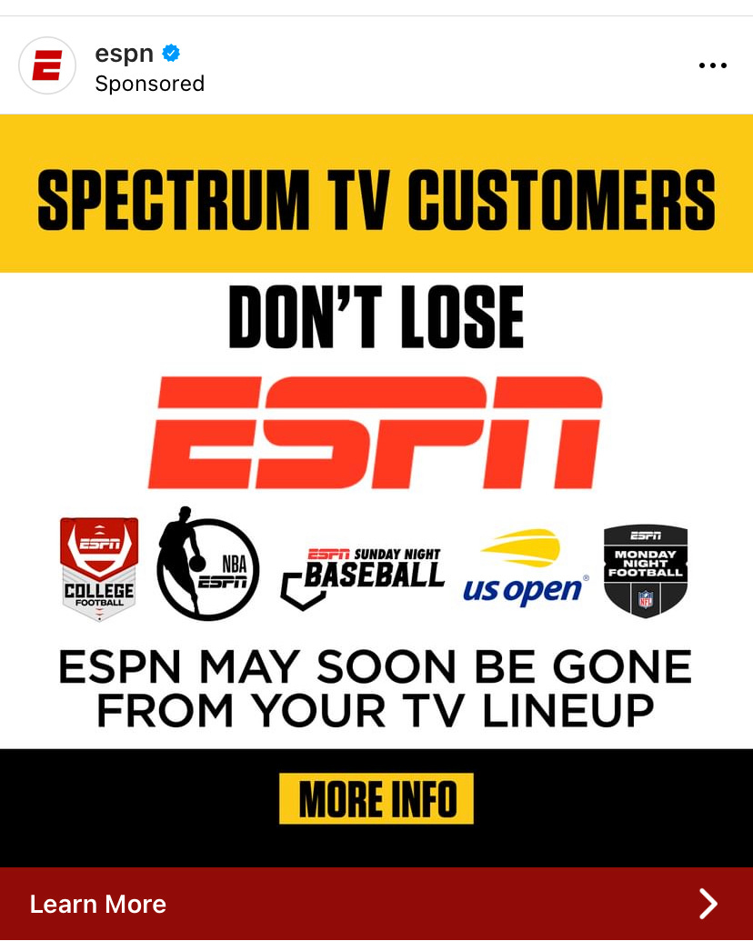 This is what greeted the very top of my (NYC-based) INSTA feed last night - nice job paying the extra META $$ for the very top feed position ESPN!