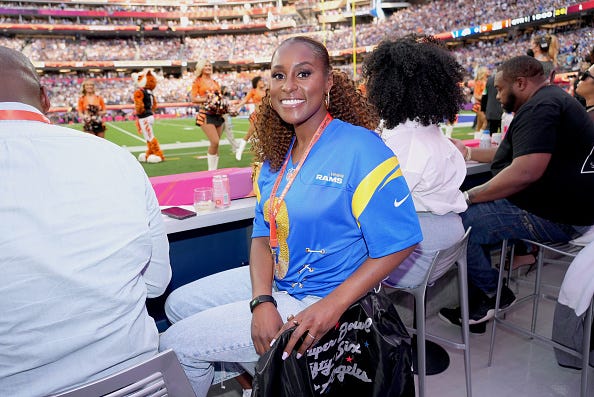 Camera Roll: Super Bowl, Soirees, Issa Rae Under anonymity, a top comedy TV writer takes a crack at captions Janice MinFeb 15, 2022∙ Paid2Share”ISSA RAMS FAN” INGLEWOOD, CALIFORNIA: Insecure writer-producer-director superstar Issa Rae at Super Bowl LVI at SoFi Stadium on February 13. (Kevin Mazur/Getty Images for Roc Nation)This post is for paid subscribersSubscribeAlready a paid subscriber? Sign inPreviousNext