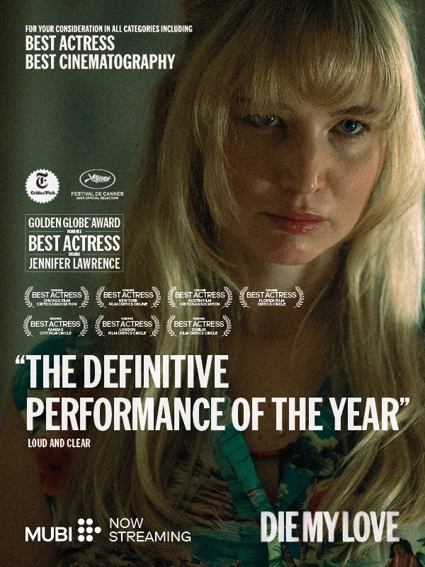 Ankler Partner DIE MY LOVE is “staggering” | FYC Best Actress Jennifer Lawrence & Best Cinematography Seamus McGarveyJan 05, 202611SharePreviousNext