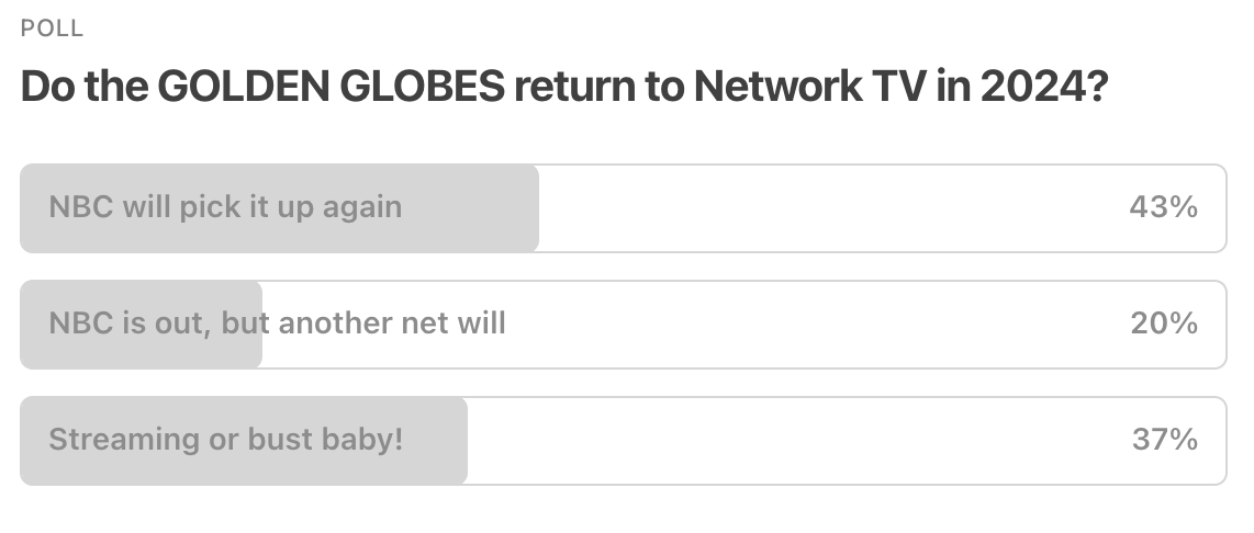 Richard began our ‘look back at the year’ planning this week, and found this post-GOLDEN GLOBES Wakeup Poll from back in January - guess we should keep our expertise to the Box Office 🥴.