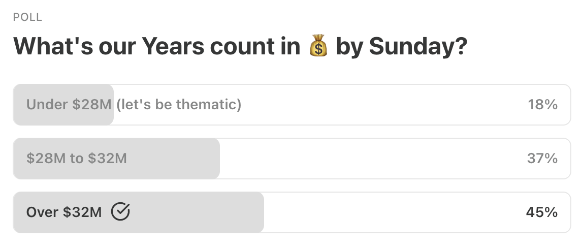 My fellow 28 Years Later bulls were overtaken by the centrists . . . although a bit of a failure here IMO that the first 28 Days Later pic hasn’t been available on any streaming service this month (outside of for-purchase rentals).