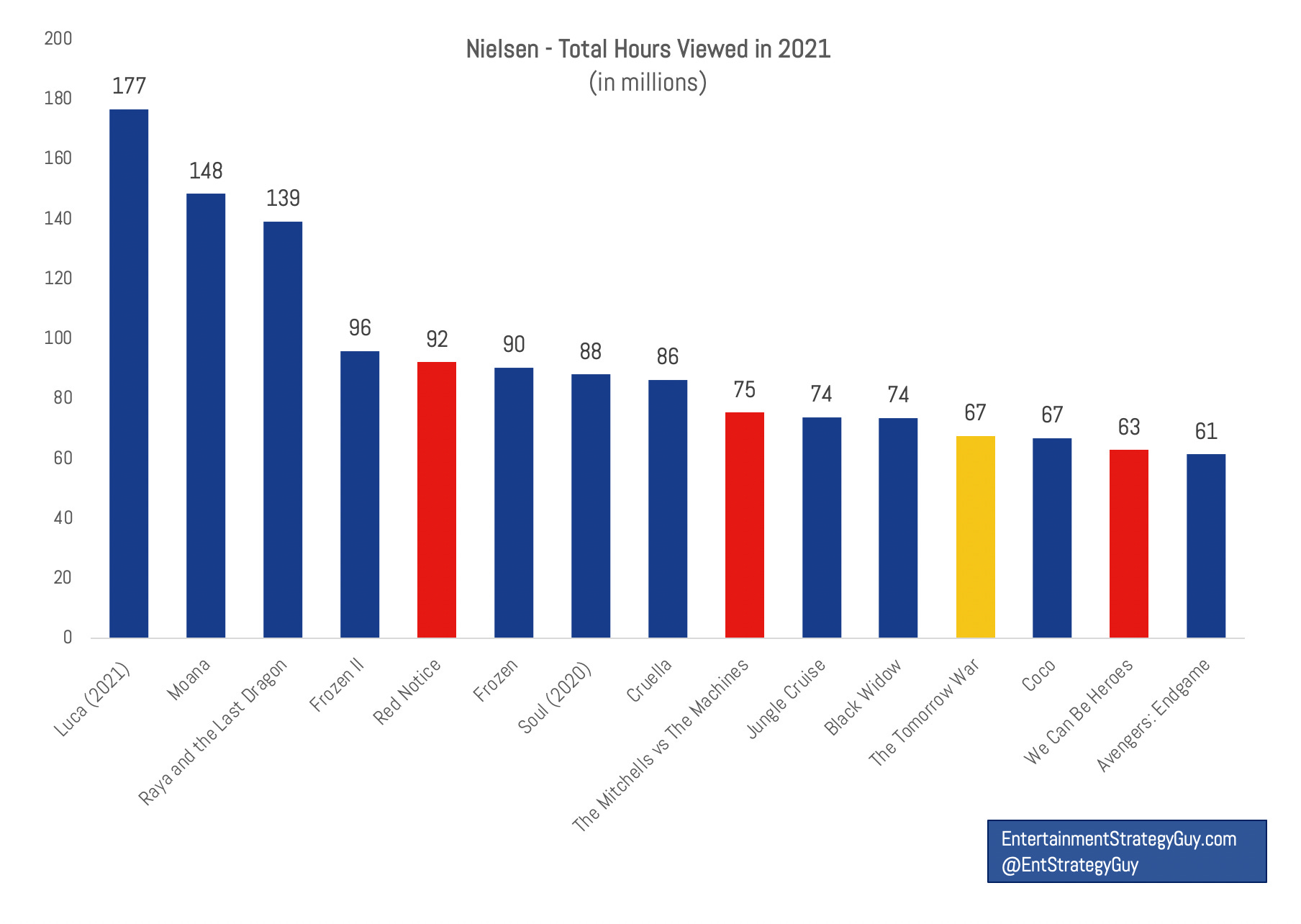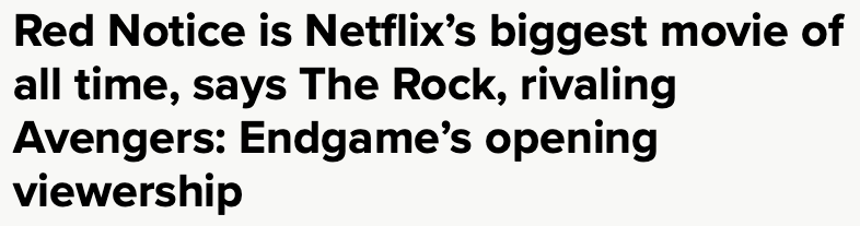 What’s that I spy? Avengers: Endgame? From 2019? That got me thinking. Maybe I could solve this Avengers: Endgame vs. Red Notice riddle. So I asked my friends at Nielsen if they could shed some light on non-streaming Avengers: Endgame viewing in 2021.