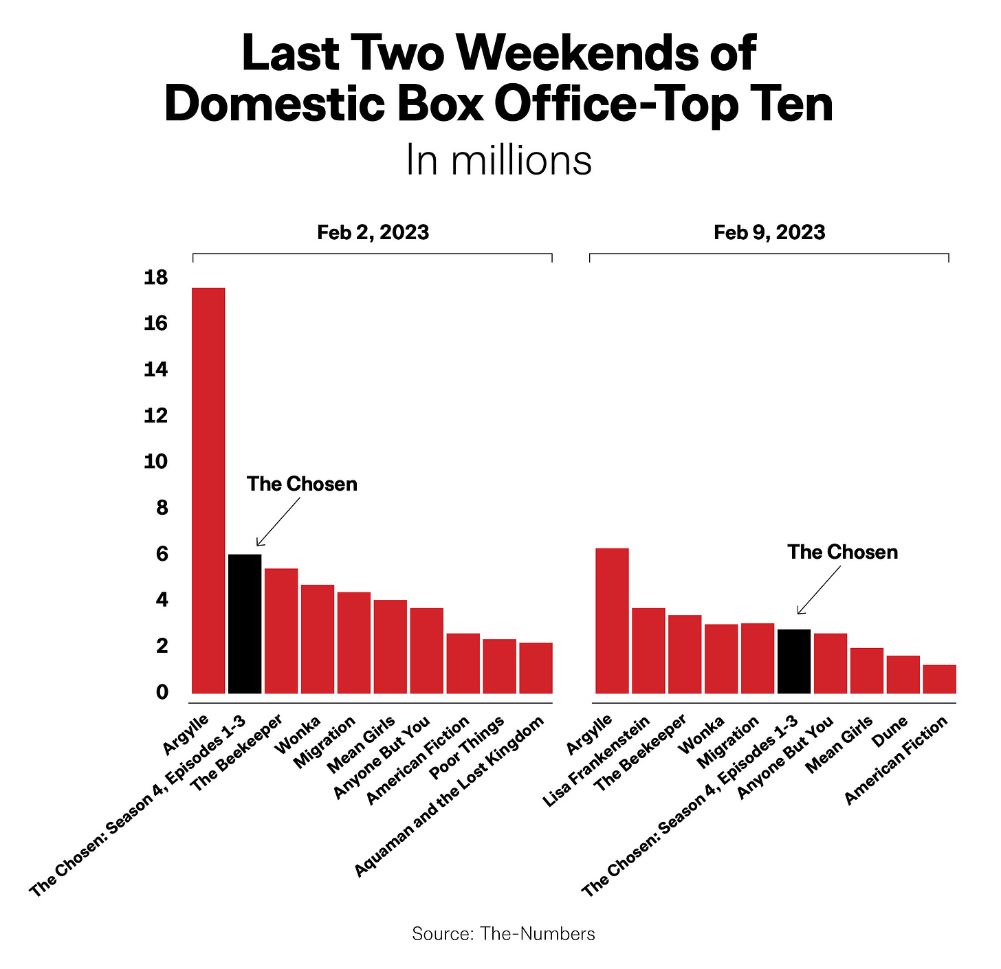 I should clarify that it’s only “surprising” for some of the country. Many people haven’t heard of The Chosen — it’s a faith-based (Christian) TV series that releases some of its episodes into theaters, along with musical specials around the holidays — and it has a devoted fanbase willing to go see it in theaters. Based on the success of its Sound of Freedom last year, its upcoming theatrical release Cabrini from the same director (about a nun who helps immigrant orphans), and the news that Amazon is making a play for Christian content as well, it really does feel like religious, specifically Christian, films and TV shows are having a moment. [Note: A previous version of this article referred to Angel Studios as a current producer of The Chosen. The Chosen is independently produced and Angel Studios distributed and provided crowd-funding support for the first season.]