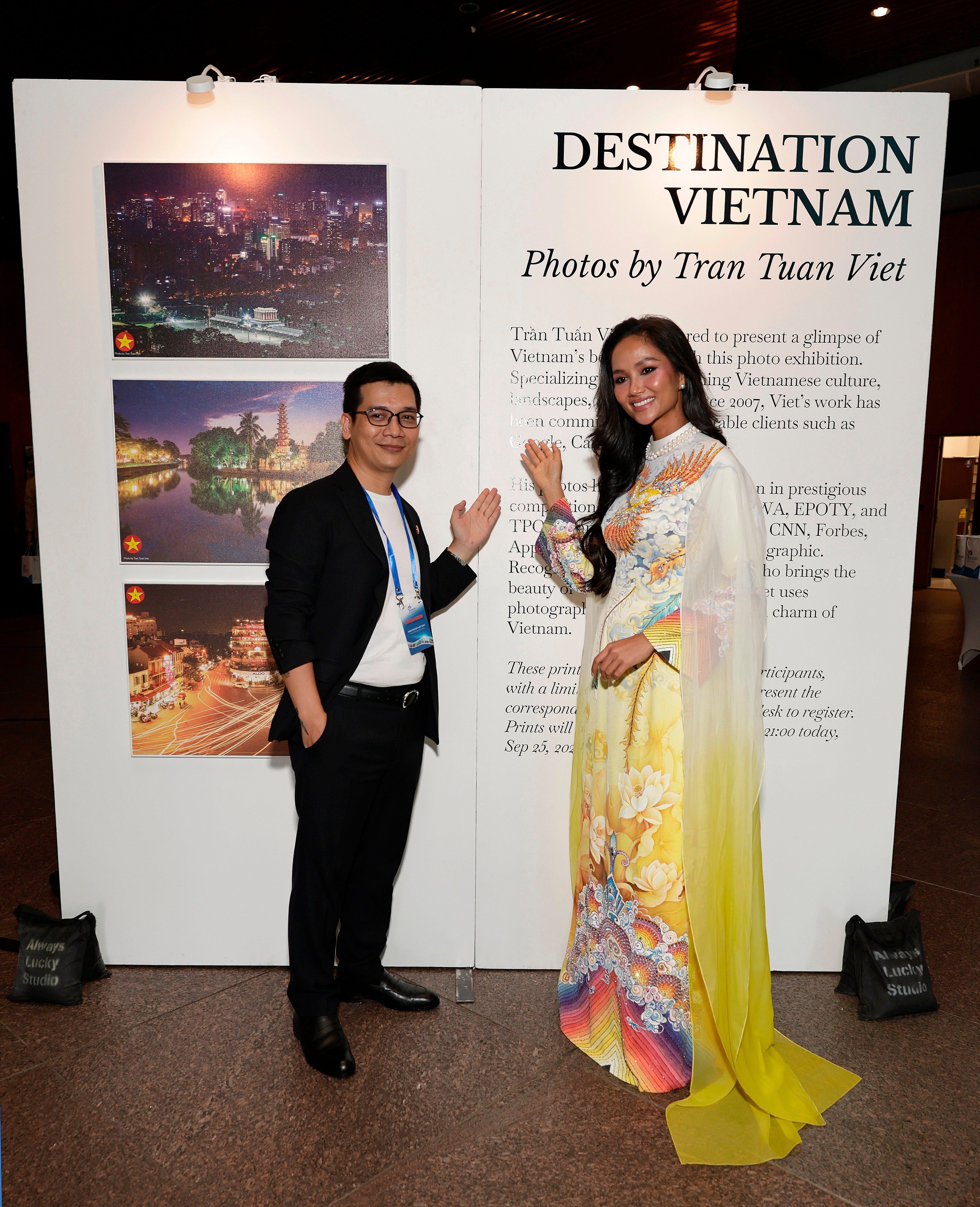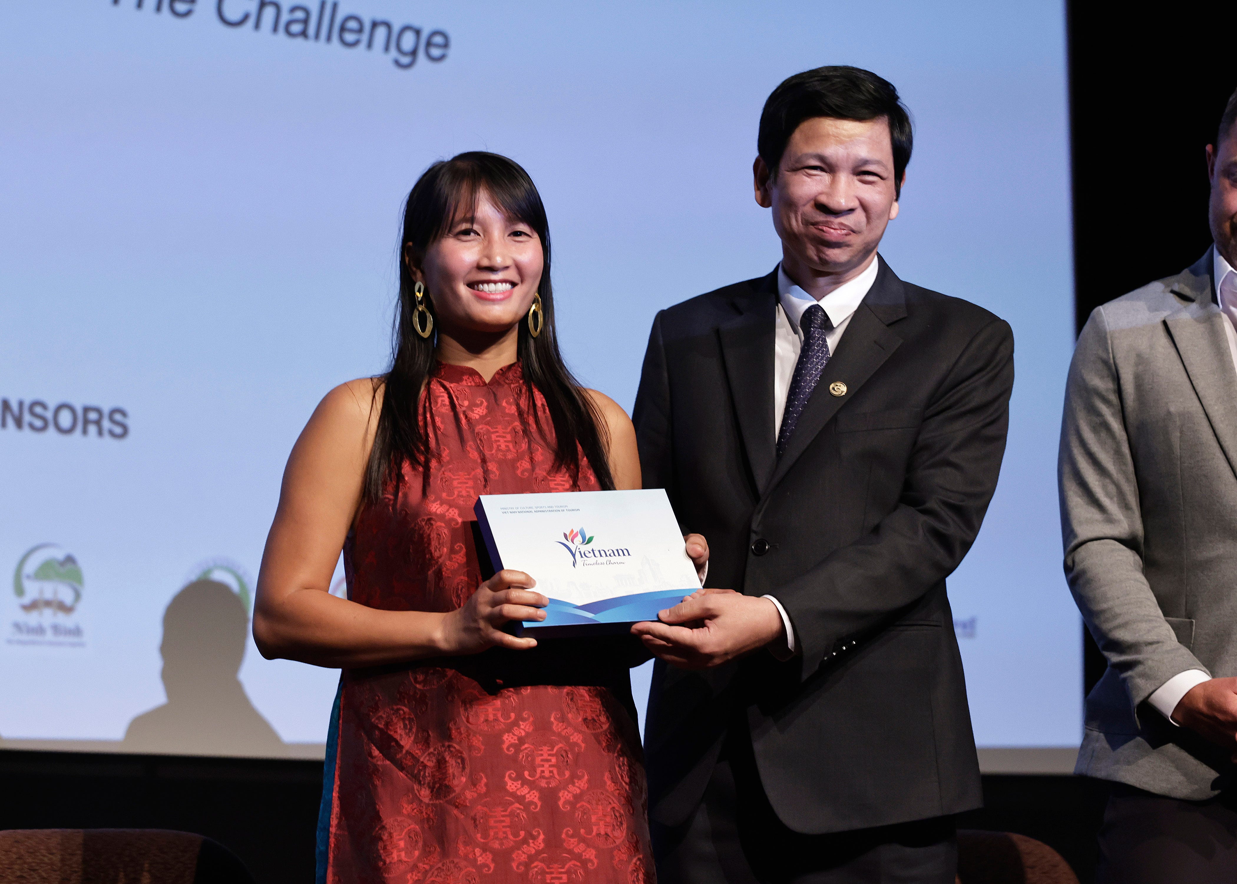 After the panel, Miss Universe Vietnam 2017, H'Hen Niê, drew the winning tickets for the night’s three raffle prizes. There were two trips to Vietnam — via Vietnam Airlines business class — one with a tour of Son Doong Cave and the other with a five-star Mekong Delta boat charter. Then came the big prize: a VinFast VF8 five-passenger electric SUV with a $50,000 value.