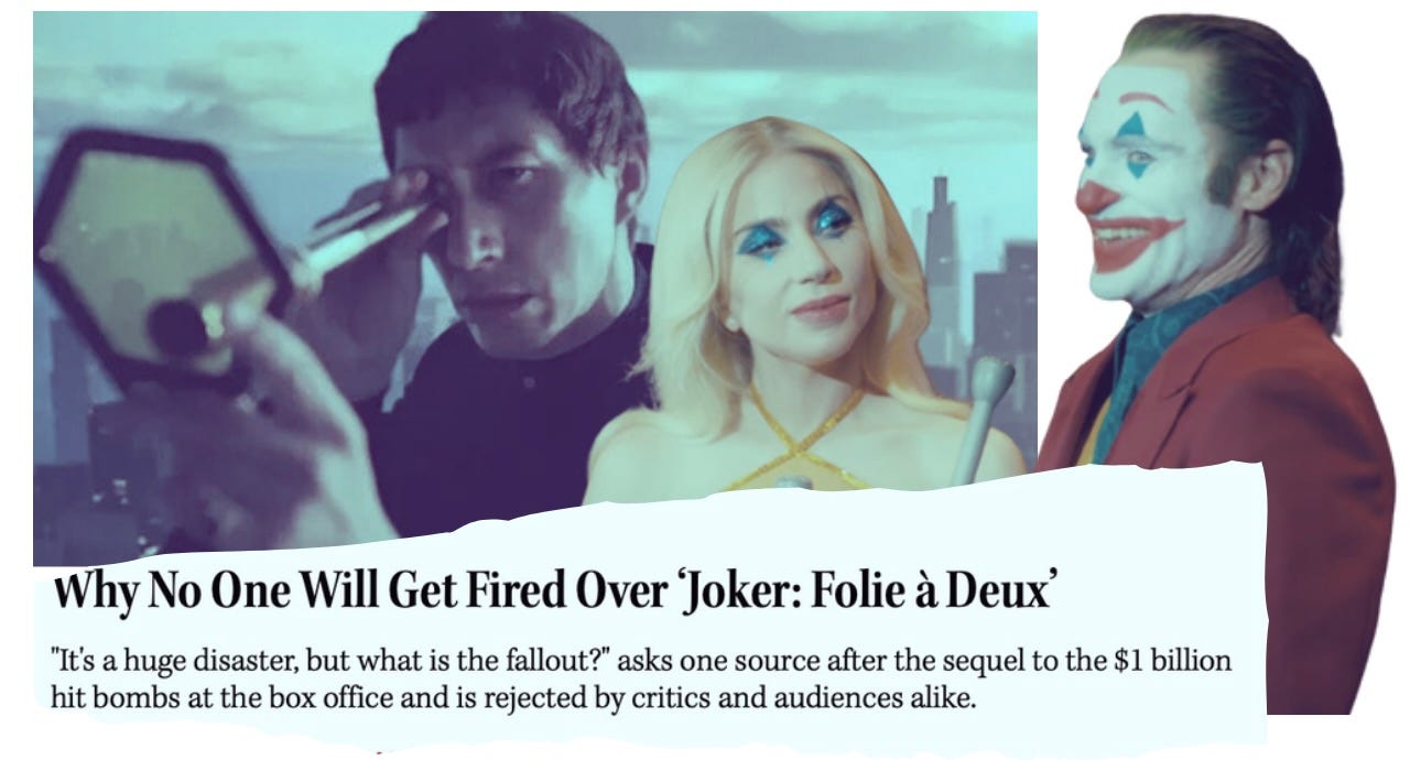 FLOP SWEAT Industry pundits demand a scalp for the box office failures of Megalopolis and Joker: Folie à Deux. (Photo illustration by The Ankler; images: Lionsgate, Warner Bros.)