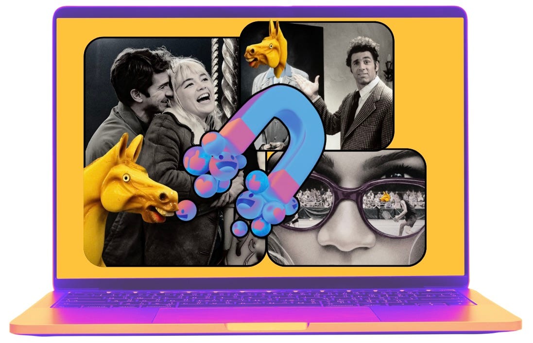 MERRY GO MEME A single still from A24’s We Live in Time featuring a carousel horse sent internet users racing to create the funniest possible mashup of Hollywood titles. (Photo illustration by The Ankler)