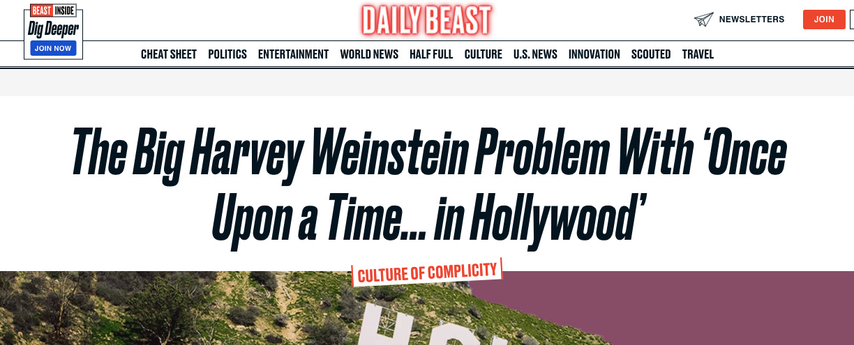 I have no idea what instigated this catalog of OUATIH’s Harvey ties past, but this is dangerous ground for Hollywood. If we’re going to start going through all the past ties everyone involved with all the nominees has to Harvey (not a terrible idea, and don’t forget to include the agencies while you’re at it), it’s going to be a very quiet Oscar race before we’re done.