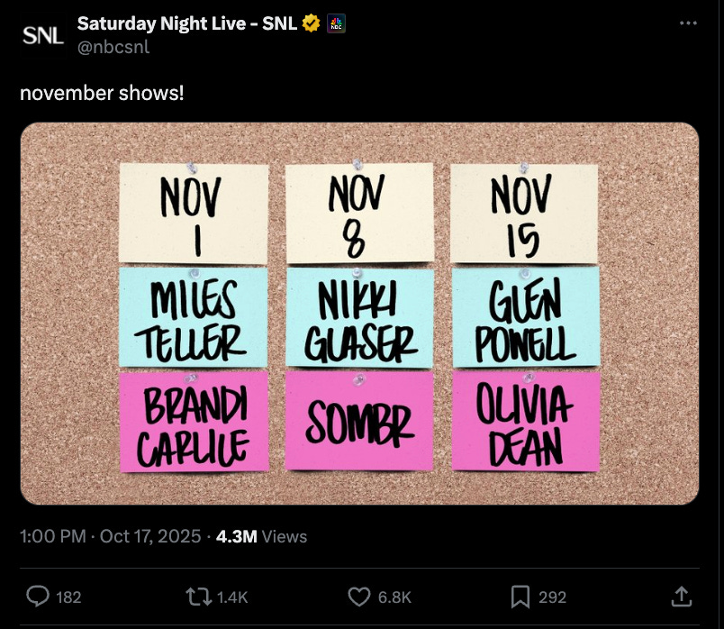Evenin! This is Sean McNulty (connect with me on LINKEDIN here if ya like or email me at seanmcnultynyc@gmail.com), and here’s the Hollywood + Media news to know on SUNDAY, October 19, 2025.
