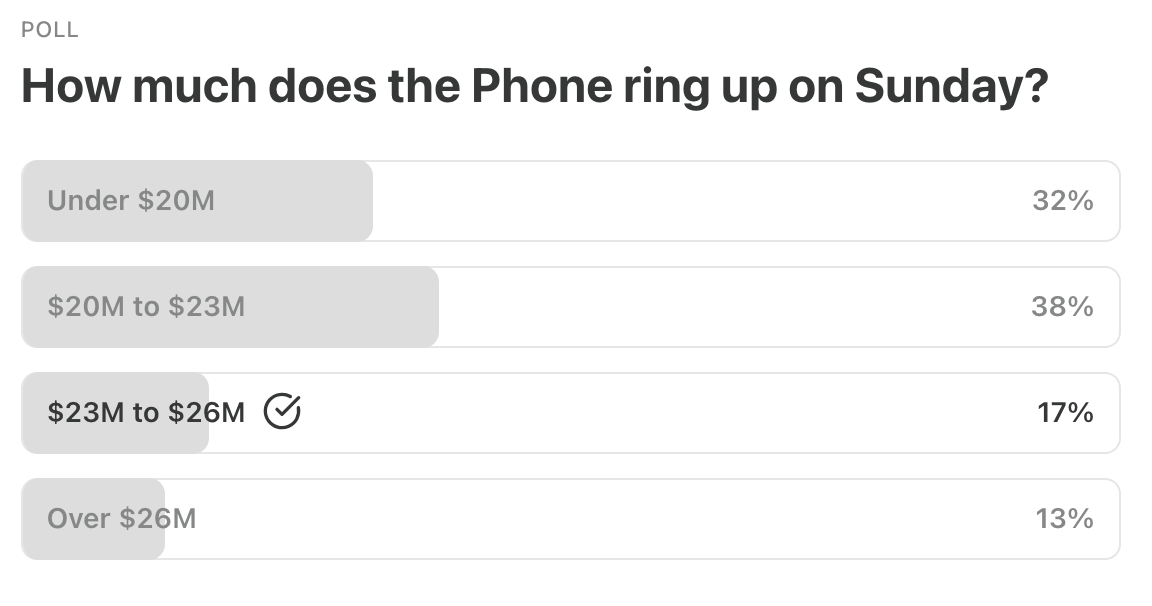 Kudos to The Black Phone 2 bulls! Nicely done, nudging out the win over my fellow 17% cohort.