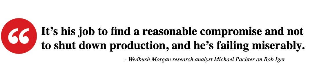 He says Disney CEO Bob Iger’s comments about the strikers being unreasonable don’t resonate with investors. “It’s his job to find a reasonable compromise and not to shut down production, and he’s failing miserably.”
