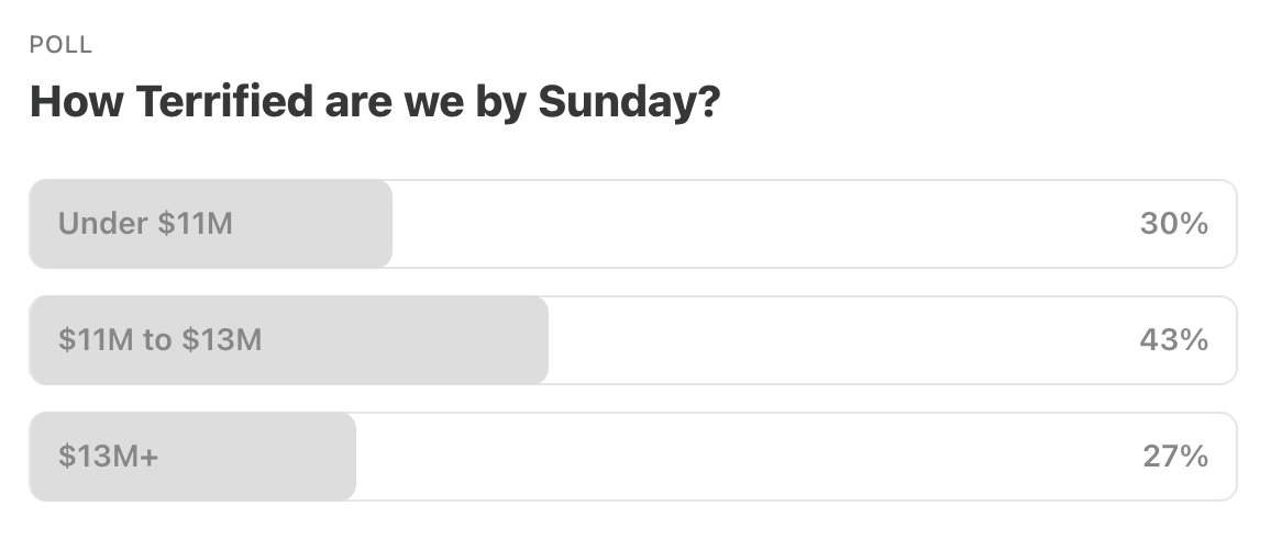 Terrifier 3 🤡 took care of the bears in what I’m sure was a very nasty fashion this weekend . . . as my fellow $13M+ bulls take the trophy. Which I really hope is not a body part from one of the bears.
