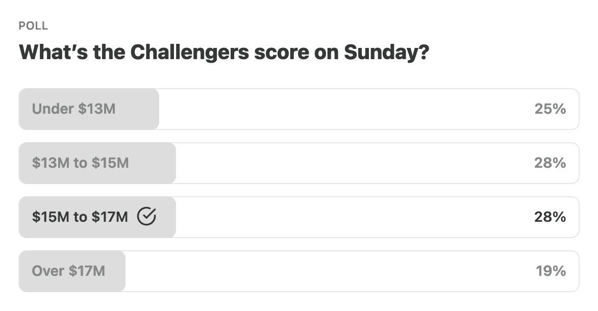 Okay, technically Challengers opened $10k over $15M so . . . great job fellow $15M to $17Mers!