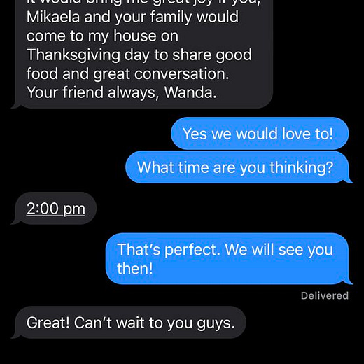 Well this is a nice story… VARIETY has more details in the link for anyone inclined - but the short of it is an AZ grandma sent a text to a number she thought was her grandson, asking him if he was coming to Thanksgiving dinner that week in 2016. Instead it went to a high school senior named Jamal Hinton, who asked if it was cool if he came anyway, and they’ve made it a tradition ever since.