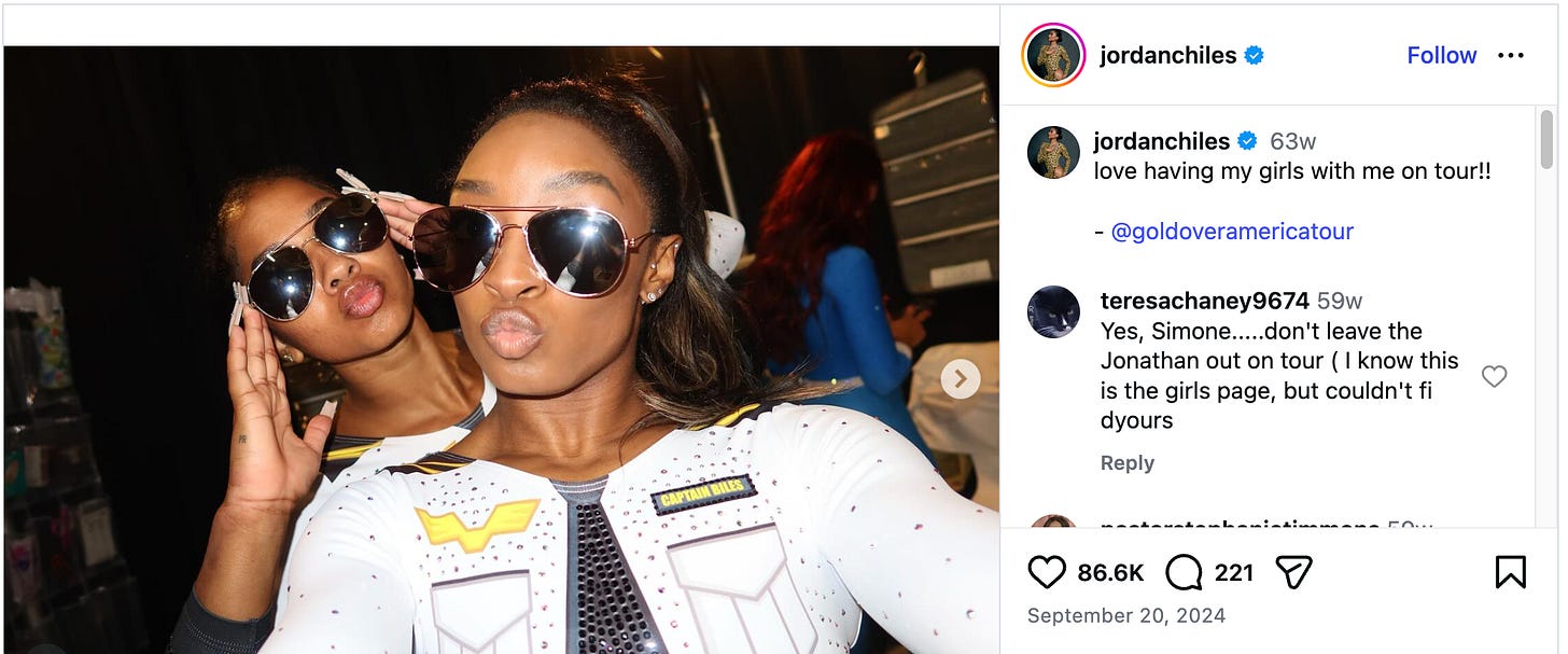 Chiles, meanwhile, largely left social media management to her mom as she reached the highest level of her sport, competing for Team USA at the 2020 Tokyo Olympics and 2024 Paris Olympics. She’s leaned into TikTok a lot more in recent months as part of her commanding performance on season 34 of Dancing With the Stars, where she and her pro partner Ezra Sosa placed third. (DWTS found major new traction with Gen Z audiences this season thanks to social media — I wrote all about the strategy that powered the show’s most-watched finale in nearly a decade.)