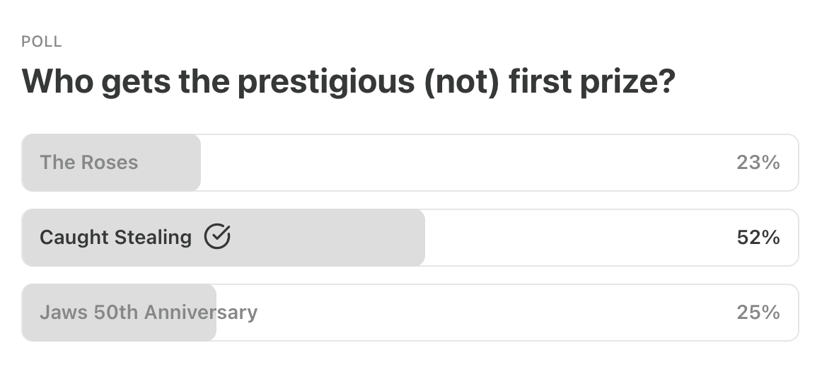 THEN: Get the Telluride scoop and thoughts on the biggest pics from the ground this weekend in Colorado from The Ankler’s Christopher Rosen, who’ll be joining Katey Rich in a Prestige Junkie After Party chat tomorrow (sign up/subscribe at that link to get the livechat alert) — plus I’m sure a preview of everything The Ankler has in store for TIFF and what they hope to be seeing there too.