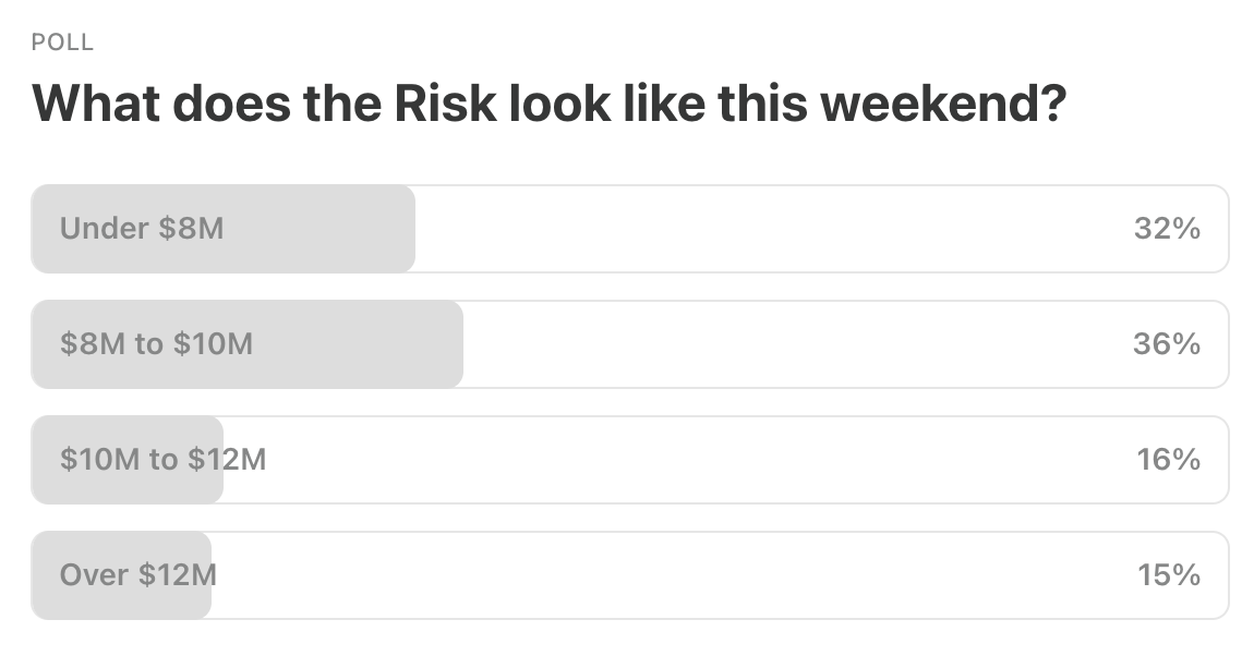 The optimists win out this weekend on Flight Risk, kudos to the 16%.