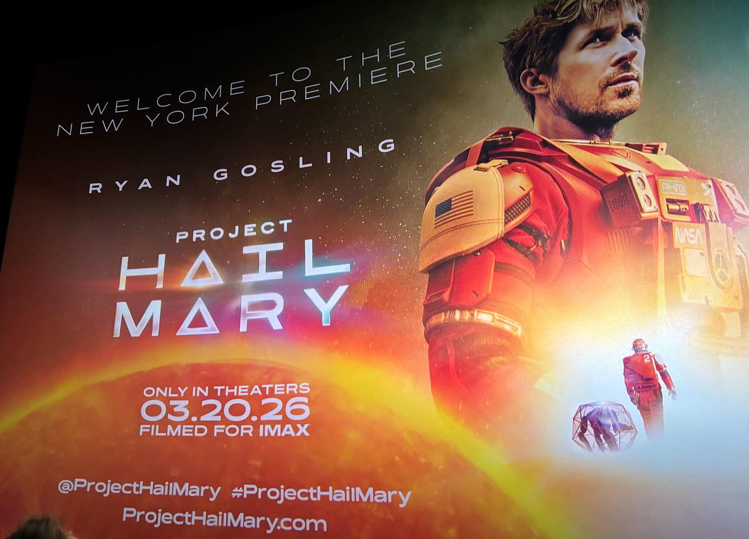 THANKS!: To the folks at AMAZON MGM for the invite to check out the NYC Project Hail Mary premiere last night, as fun as billed! That Gosling is a movie star for a reason.