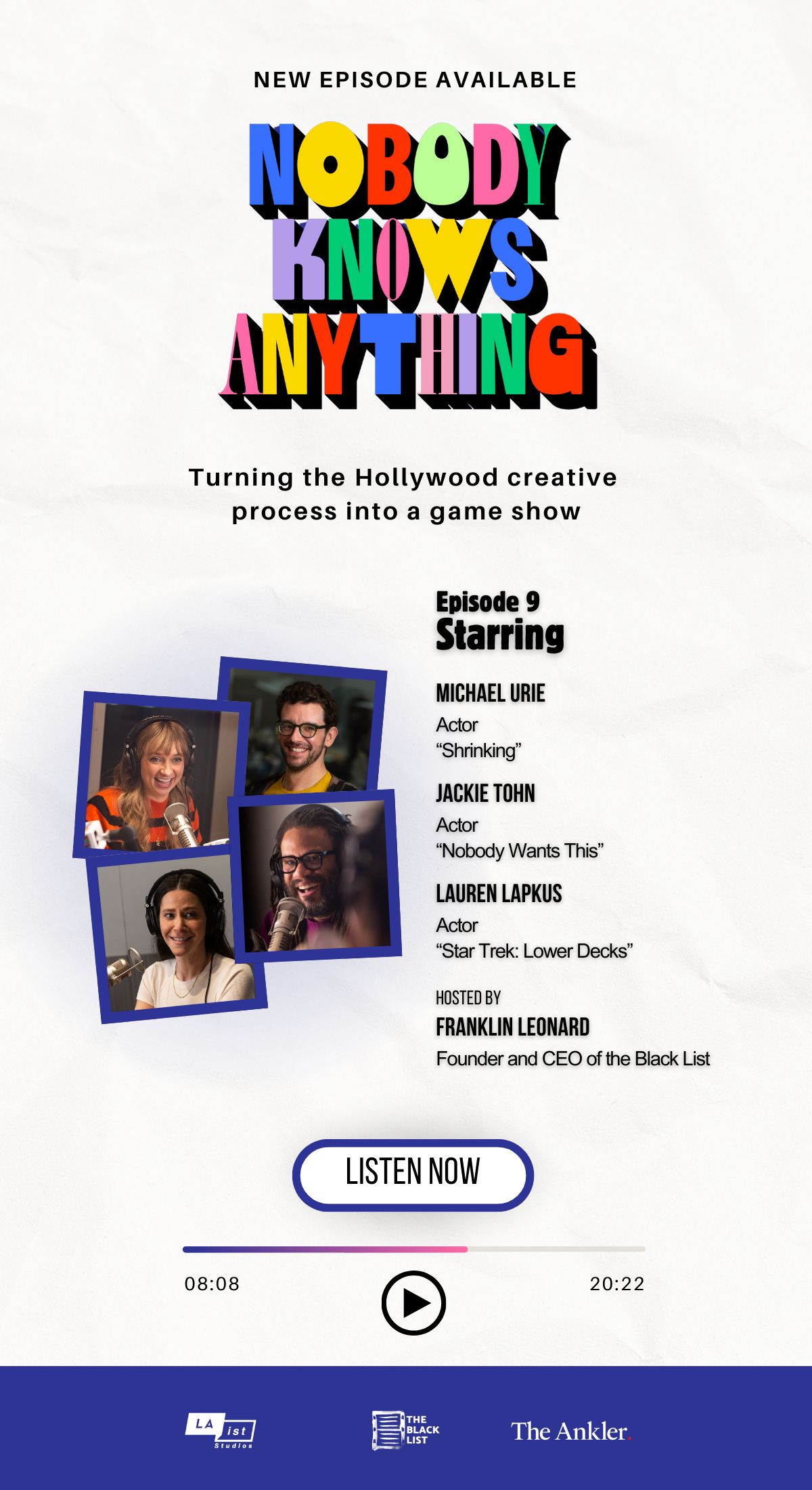 Ankler Partner Listen Now: Michael Urie, Jackie Tohn & Lauren Lapkus on "Nobody Knows Anything"Mar 04, 202512SharePreviousNext
