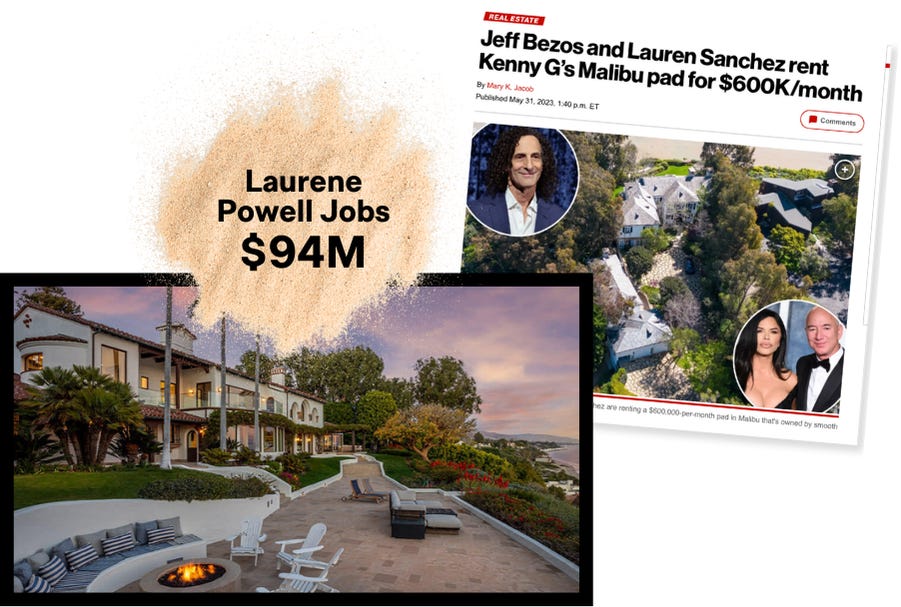 But over the past year, Steindorff has noticed a shift in the high-profile folks he bumps into. In June, he was surprised to see a large security detail on Little Dume — a rarity for the laid-back, celeb-friendly spot, which requires a key to gain entry — surrounding an individual who turned out to be Jeff Bezos (net worth: $242 billion). The Amazon founder and second-richest man in the world was renting Kenny G’s house — for what I’m told was around $600,000 a month — and was regularly spotted in Point Dume throughout the summer.