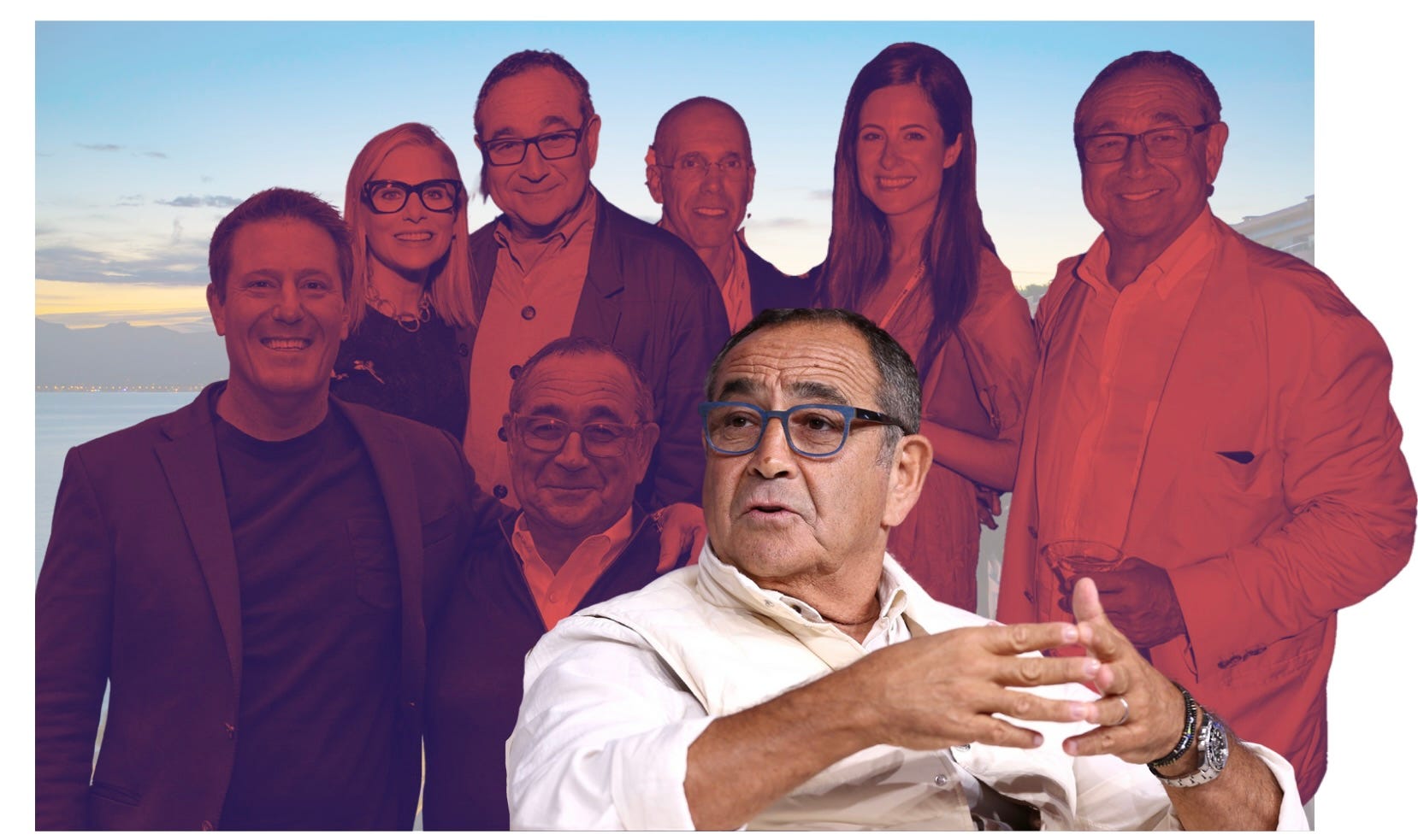 KASSAN ON THE CLOCK Clockwise from left: with Kevin Mayer; Dawn Ostroff; Jeffrey Katzenberg. “I've always been a believer in chaos breeding opportunity,” he said in 2015. (Photo illustration by The Ankler; Getty Images credits below)