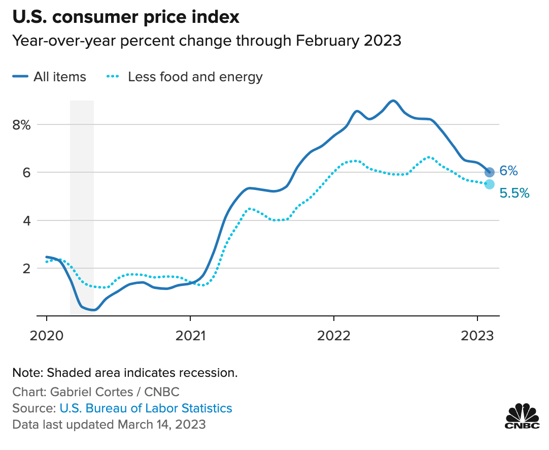 INFLATION: Was still +6% YoY for February, and +0.4% on the month… which matched Wall Street expectations. Food and Housing costs are still the main issues - and Street money thinks the Fed will still boost interest rates 0.25 this month as a result - despite all the SVB stuff (and their wildest dreams at having 0.00 March hike #nicetry).