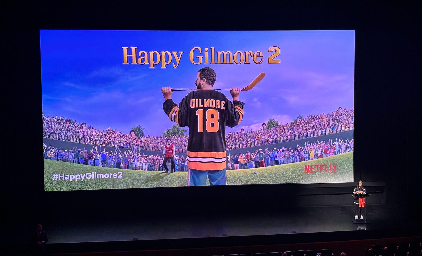 To NETFLIX for the invite to check out Happy Gilmore 2 last night in NYC. While the comedy lineup is stacked . . . gotta say Scottie Scheffler managed to come away with some of the best moments — that guy just can’t lose this week. Also nice to finally see Scott Stuber finally catch a break on the big screen.