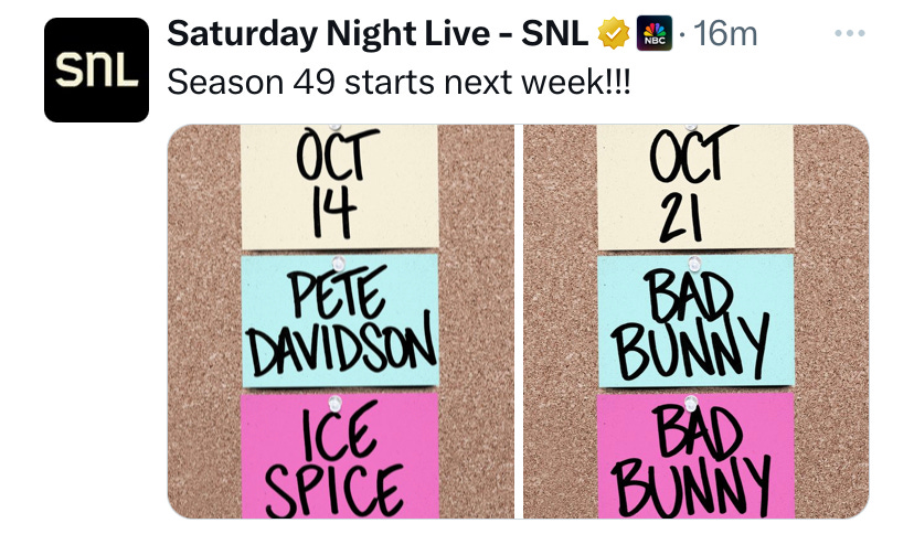 THEN: SNL is indeed coming back on Oct. 14 (maybe) before the SAG strike is over. SAG did put out a statement giving the 👍: “They are not in violation of SAG-AFTRA strike rules, and we support them in fulfilling their contractual obligations.”