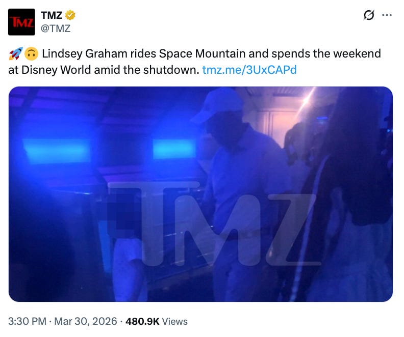 YUP: Nice to see Lindsey Graham enjoying the DISNEY offerings in Florida while on the congressional break. I’m sure he got a nice welcome from the Florida TSA.