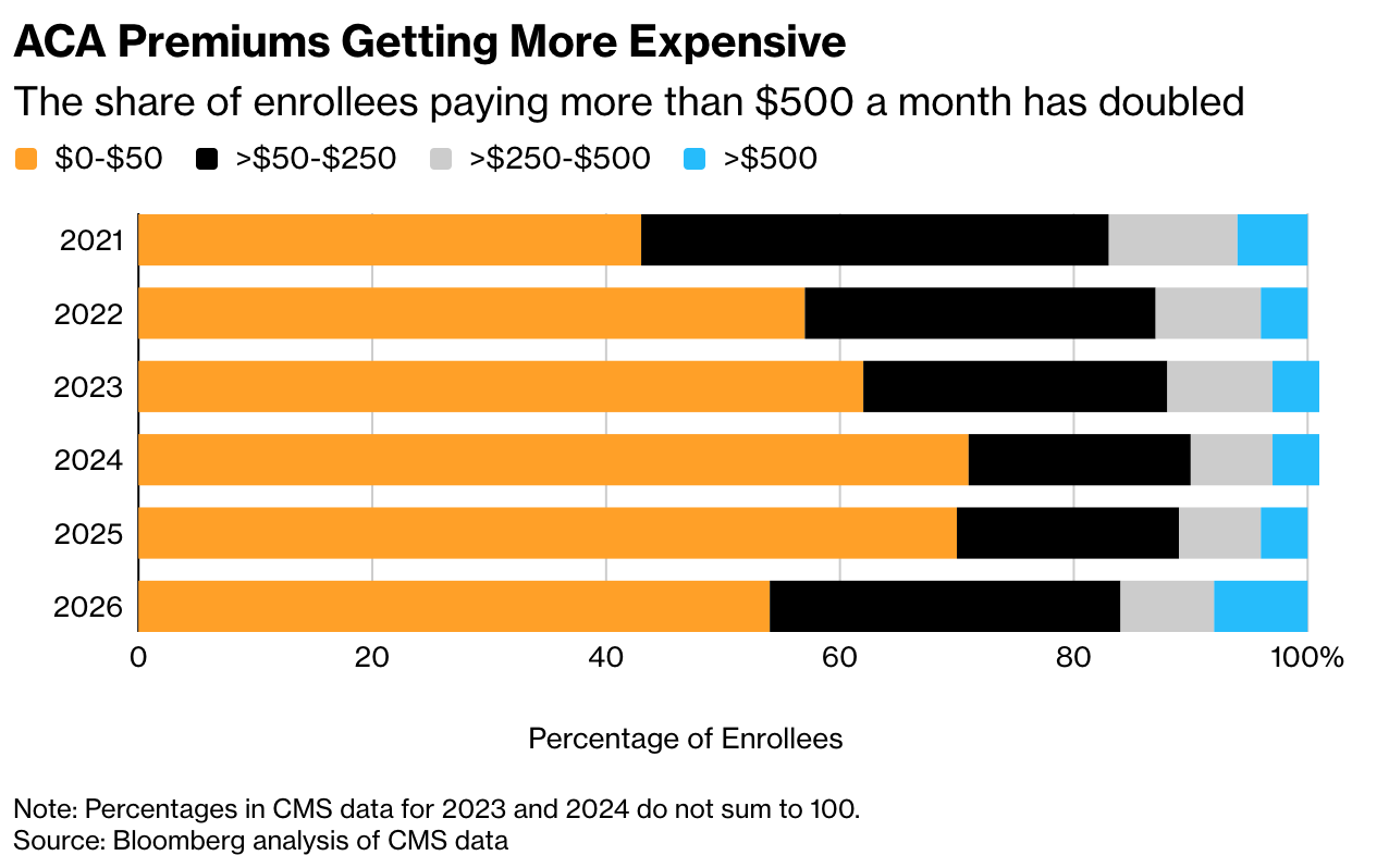 OH: Here’s the effect that the Trump administration’s policies are having on Obamacare health insurance fees that over 23M Americans are paying this year — including the amount of folks paying $6k+ a year doubling in 2026 vs. the previous 4 years. Ok, sure, but think about all the money they’re saving at the gas station!