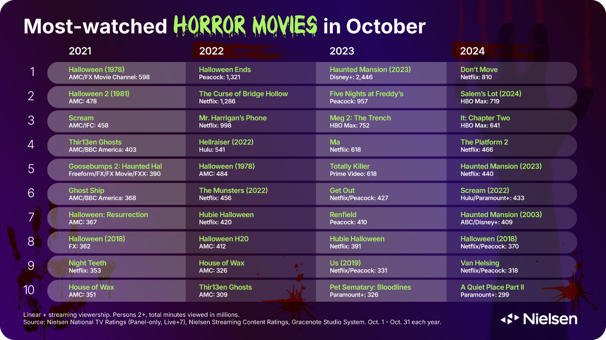 PLUS: This NIELSEN chart was kinda fun for Halloween. M3GAN 2.0 is #1 on the first week of October chart this year (Oct. 1 to Oct. 7).