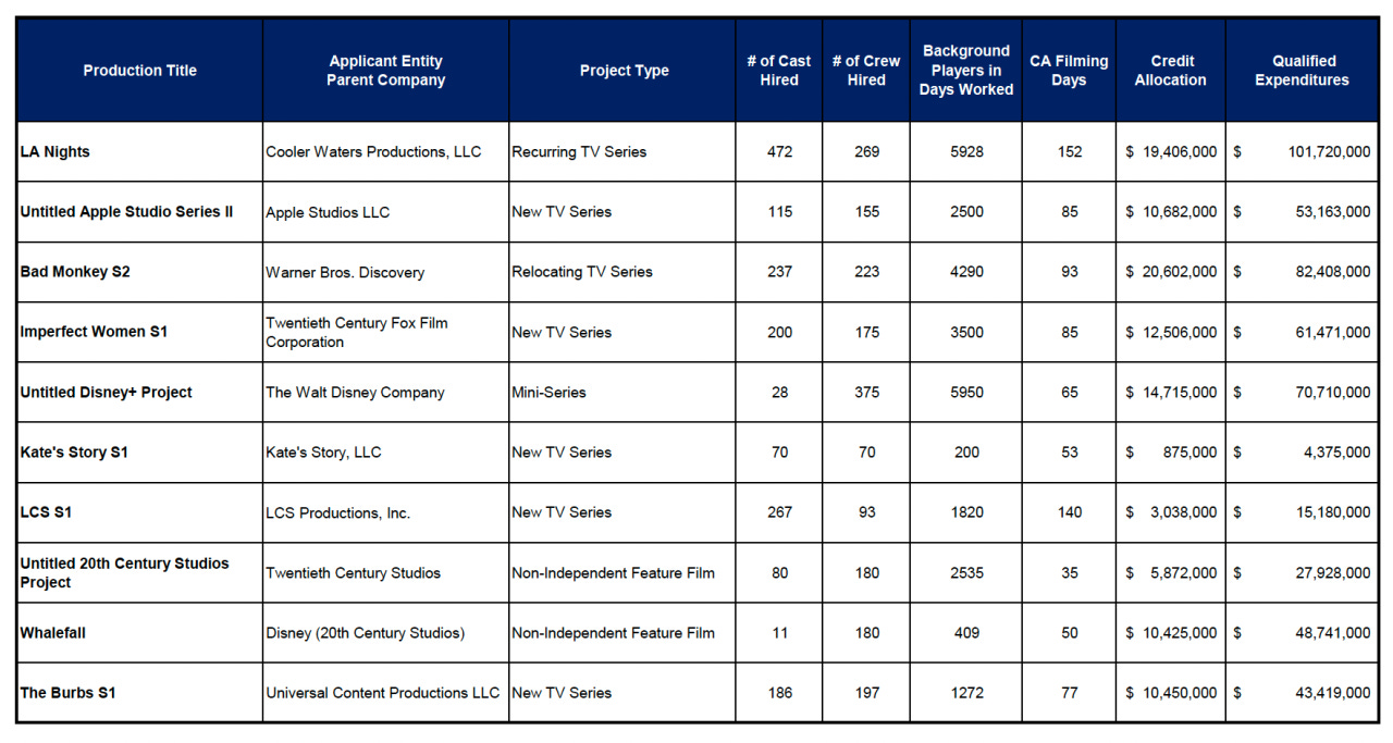 THEN: Here is your latest list of shows and movies getting CA tax credits . . . including a show set in Florida: