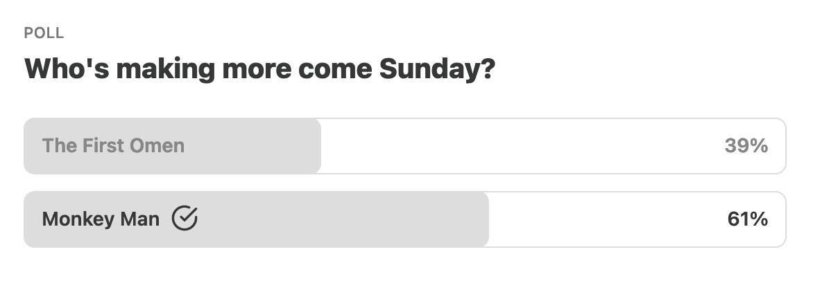 This is totally just based on a gut feeling, but I’m joining the Monkey Man crowd.