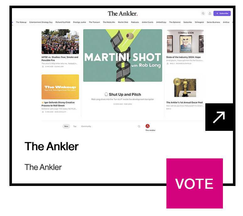 AH!: Just one last, frankly blatant plea to take a few seconds to vote for The Ankler with our Webbys nomination in the Email Newsletters category!